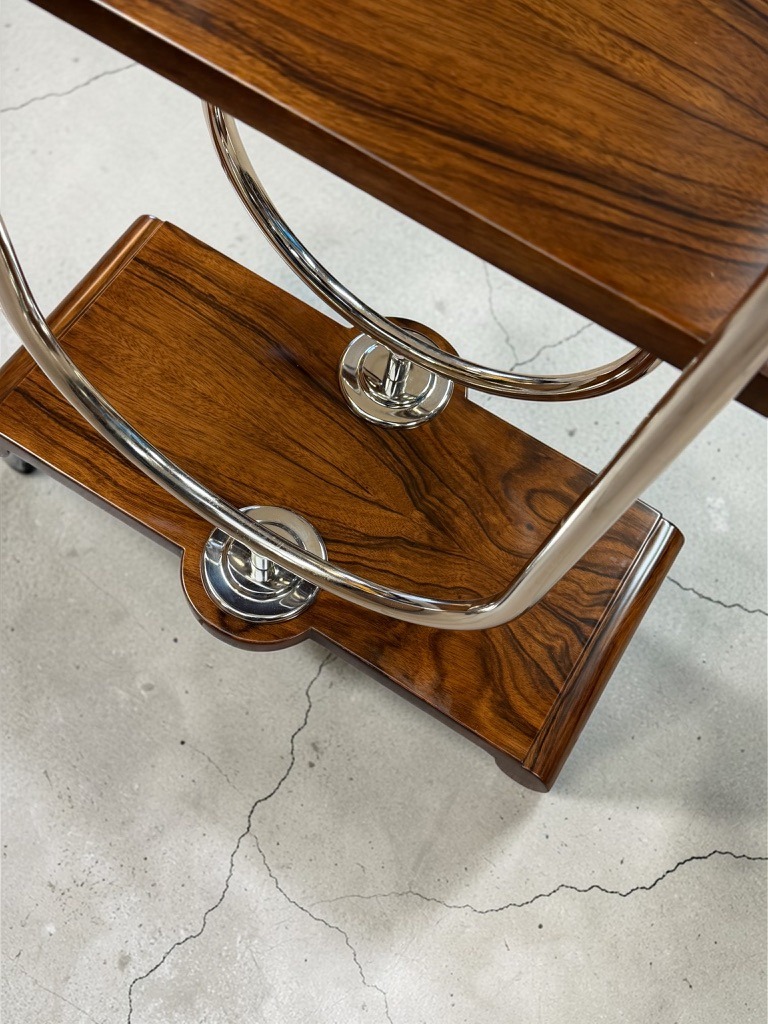 Obiekt po profesjonalnej konserwacji, zachowany w bardzo dobrym stanie, gotowy do ekspozycji. Podstawa oraz półki zostały pokryte lakierem, elementy metalowe mają nową powłokę galwaniczną.