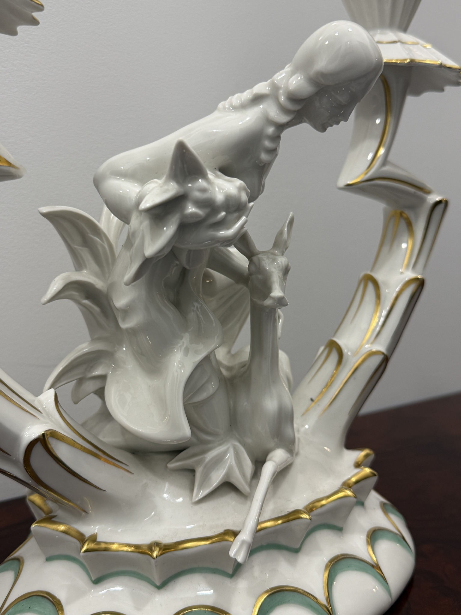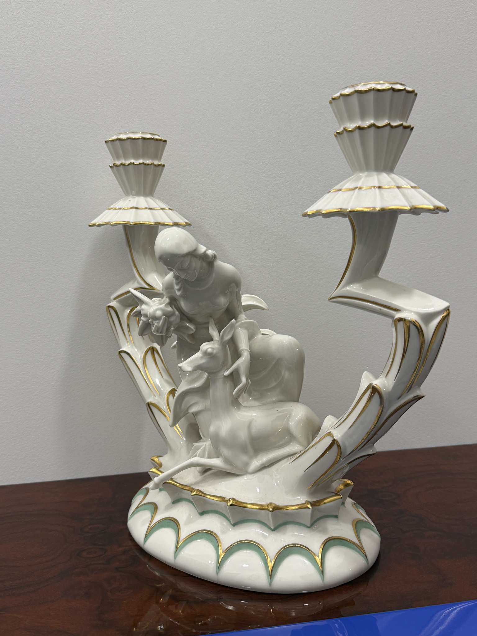 Porcelanowy, trójramienny świecznik.