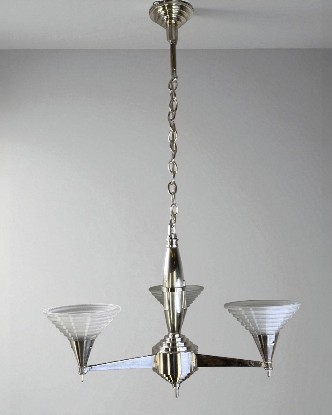 Trójramienny srebrzony żyrandol art deco. Polska, lata 20- te XXw.